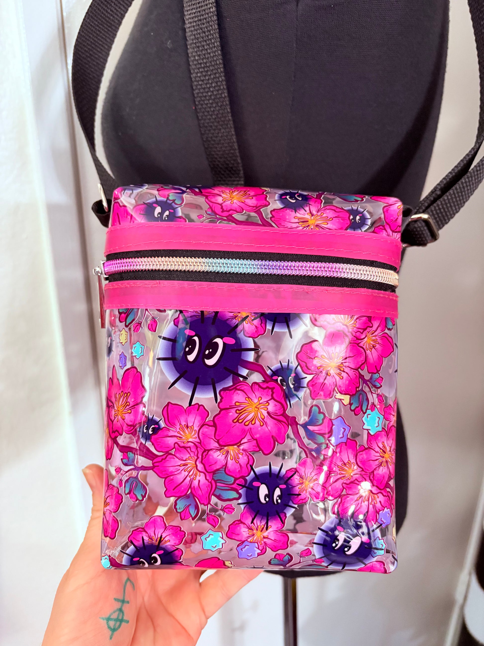 Clear floral soots crossover bag