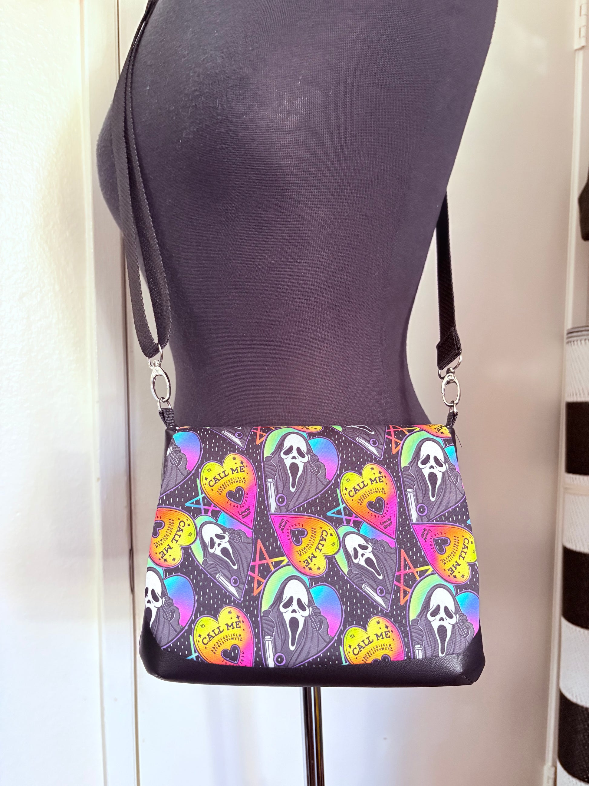This Ghostface Scream Ouija Flap Crossbody Bag is the ultimate accessory for horror lovers. Designed for everyday wear or the perfect Halloween touch, this handmade bag blends eerie charm with sleek function.